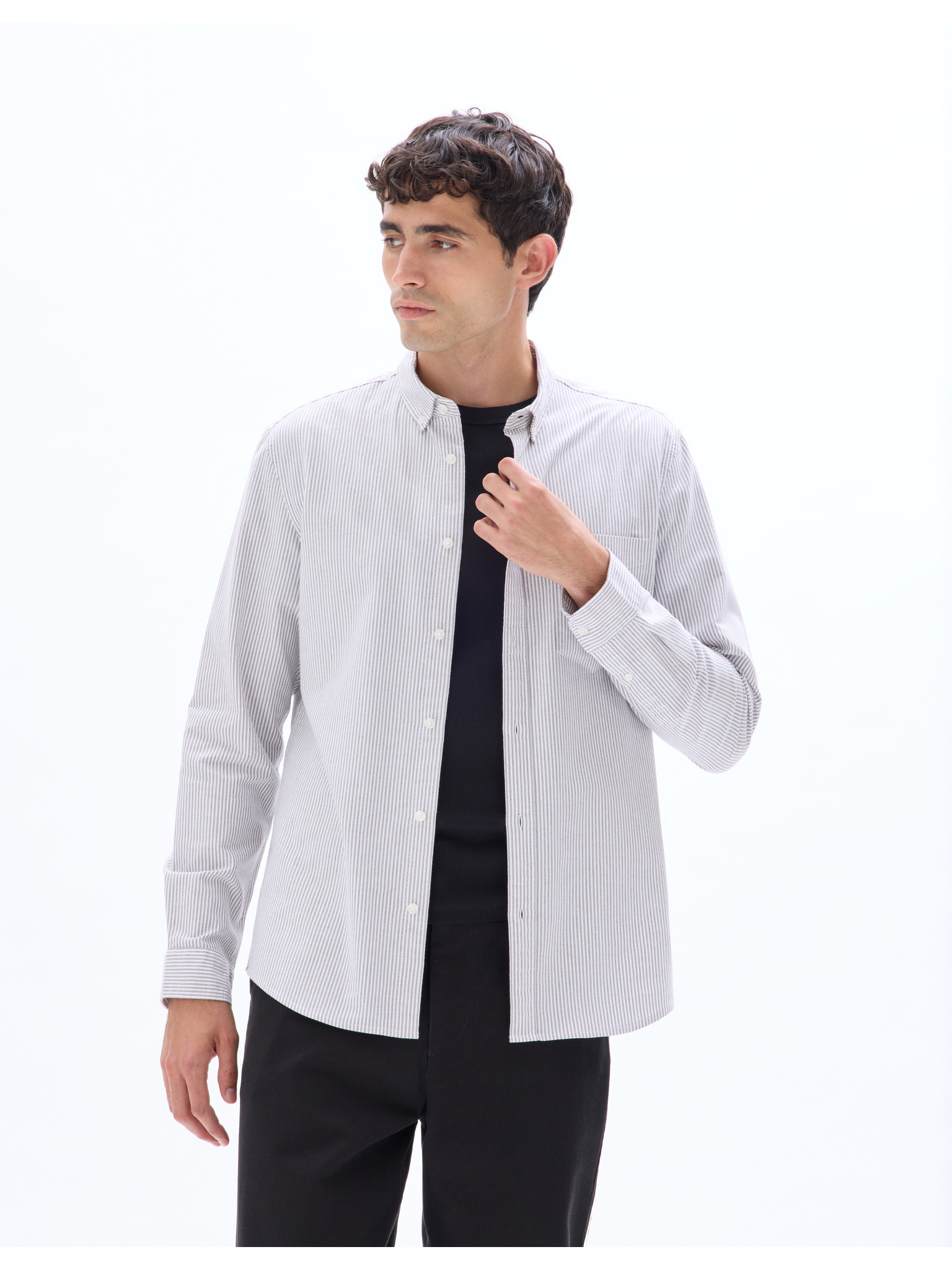 Weiß gestreiftes REGULAR FIT-Hemd für Herren mit Tasche Ombre Clothing