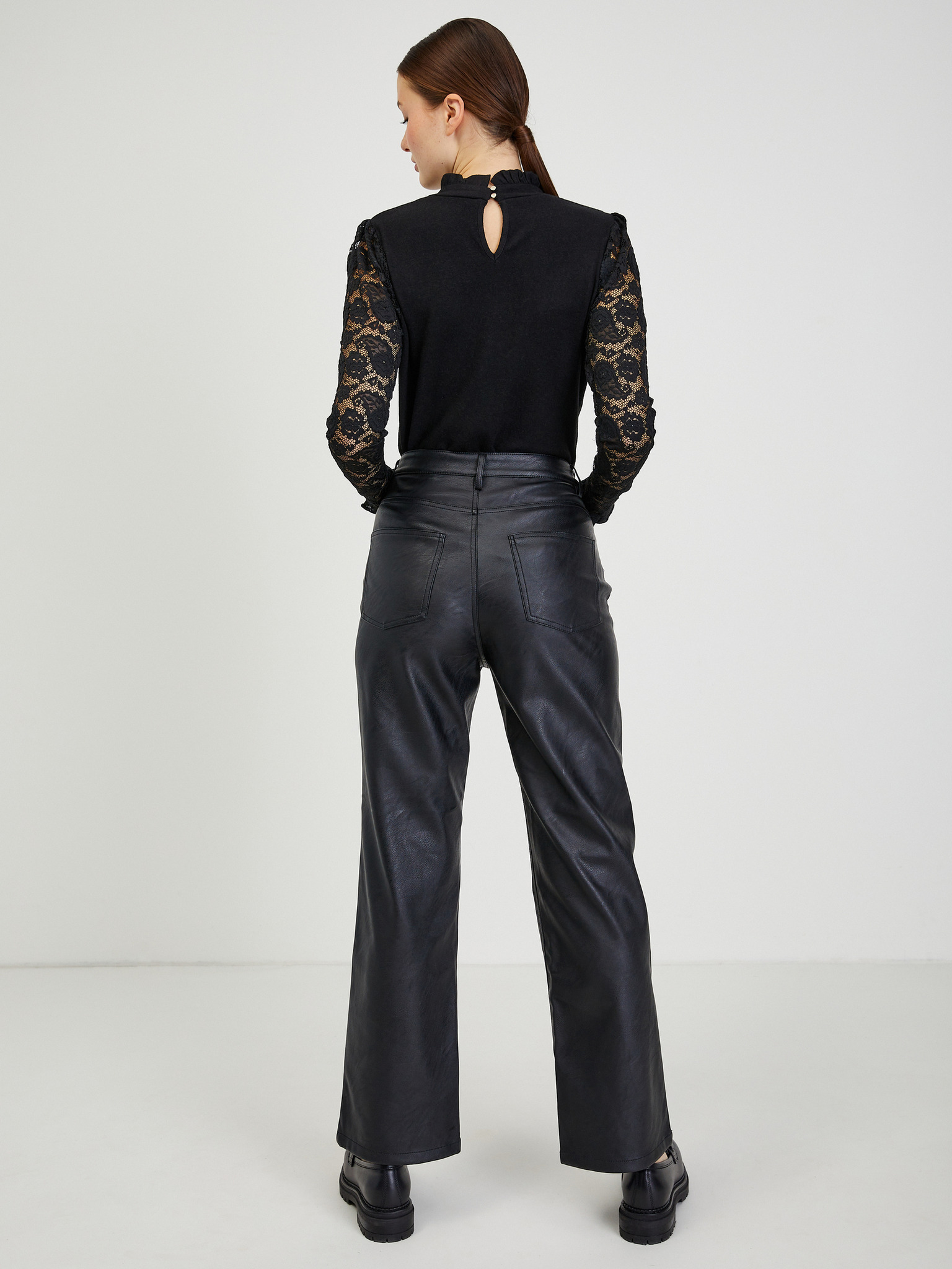 Schwarzer Pullover mit dekorativer Flechtmuster und langen Ärmeln von Moodo
