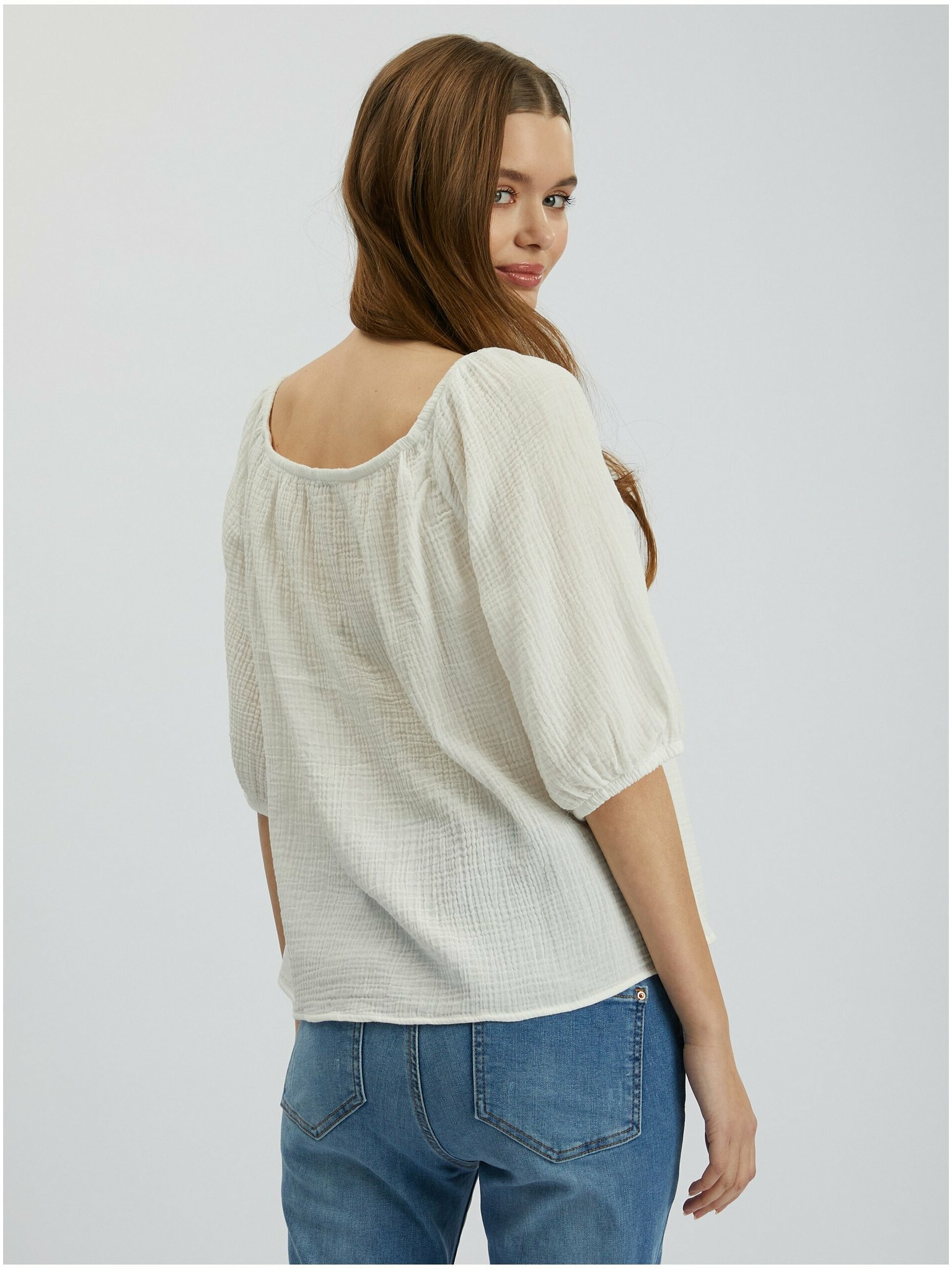 Cremefarbene Damen-Kurzarmbluse ORSAY