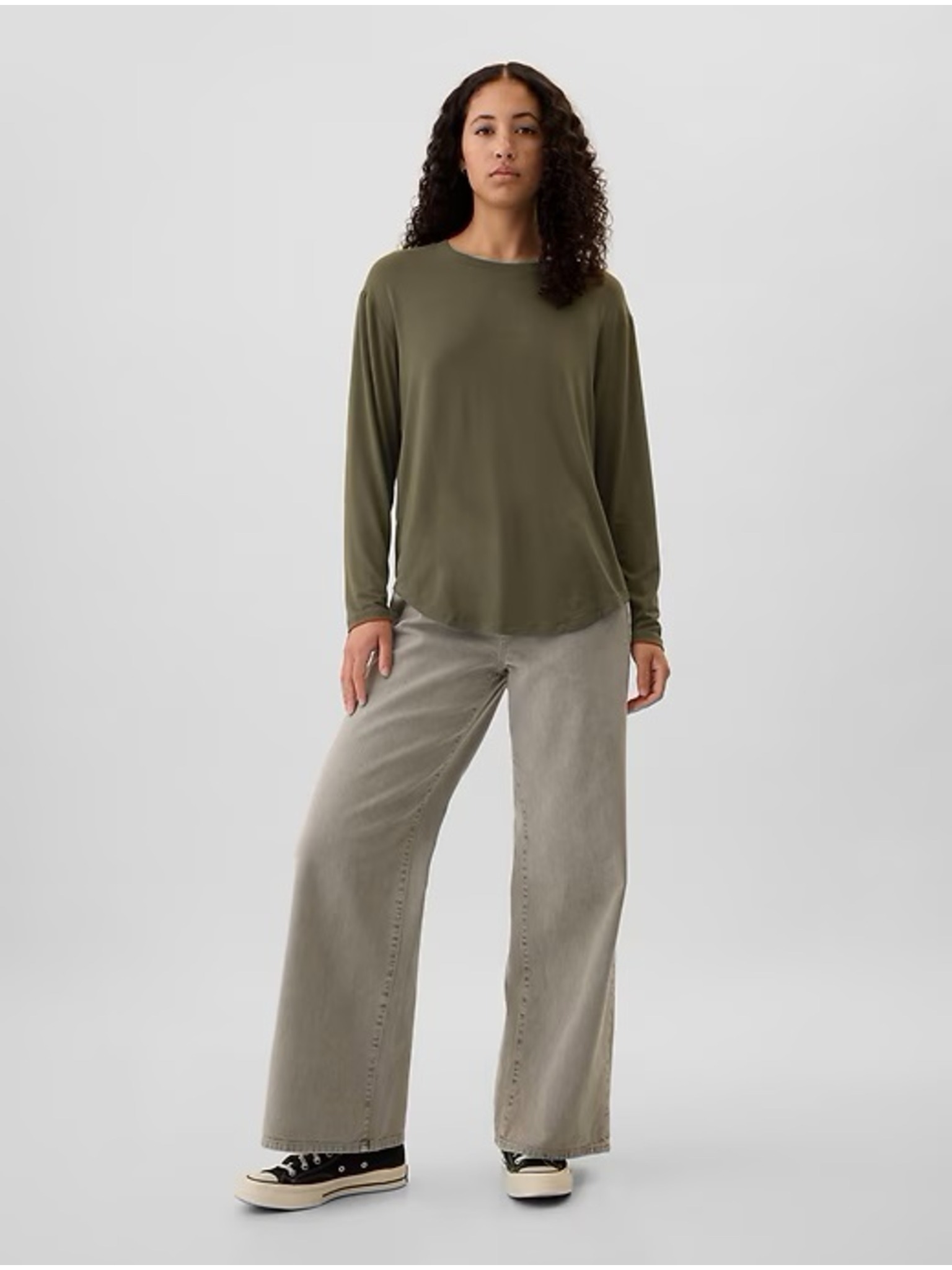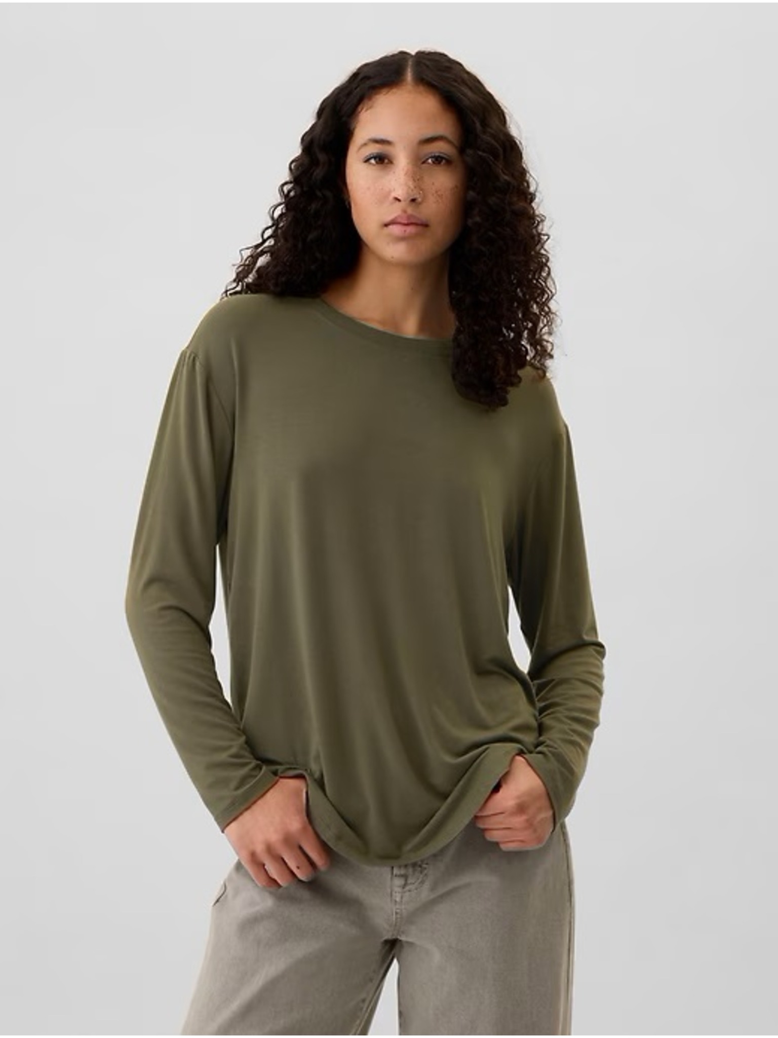 Olivgrünes Damen-Langarm-T-Shirt Moodo