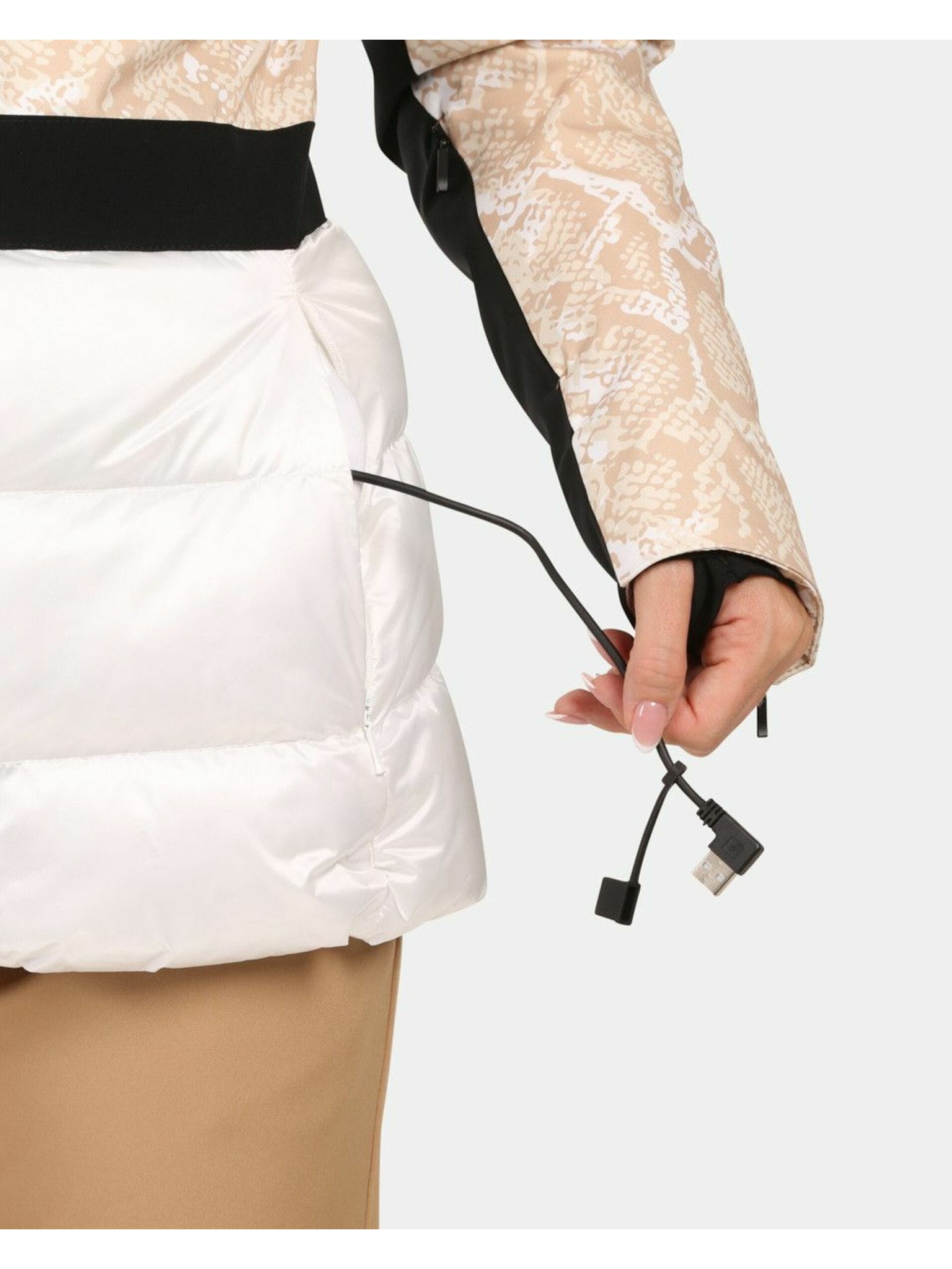 Cremefarbene Damen-Winter-Steppjacke mit Gürtel ORSAY