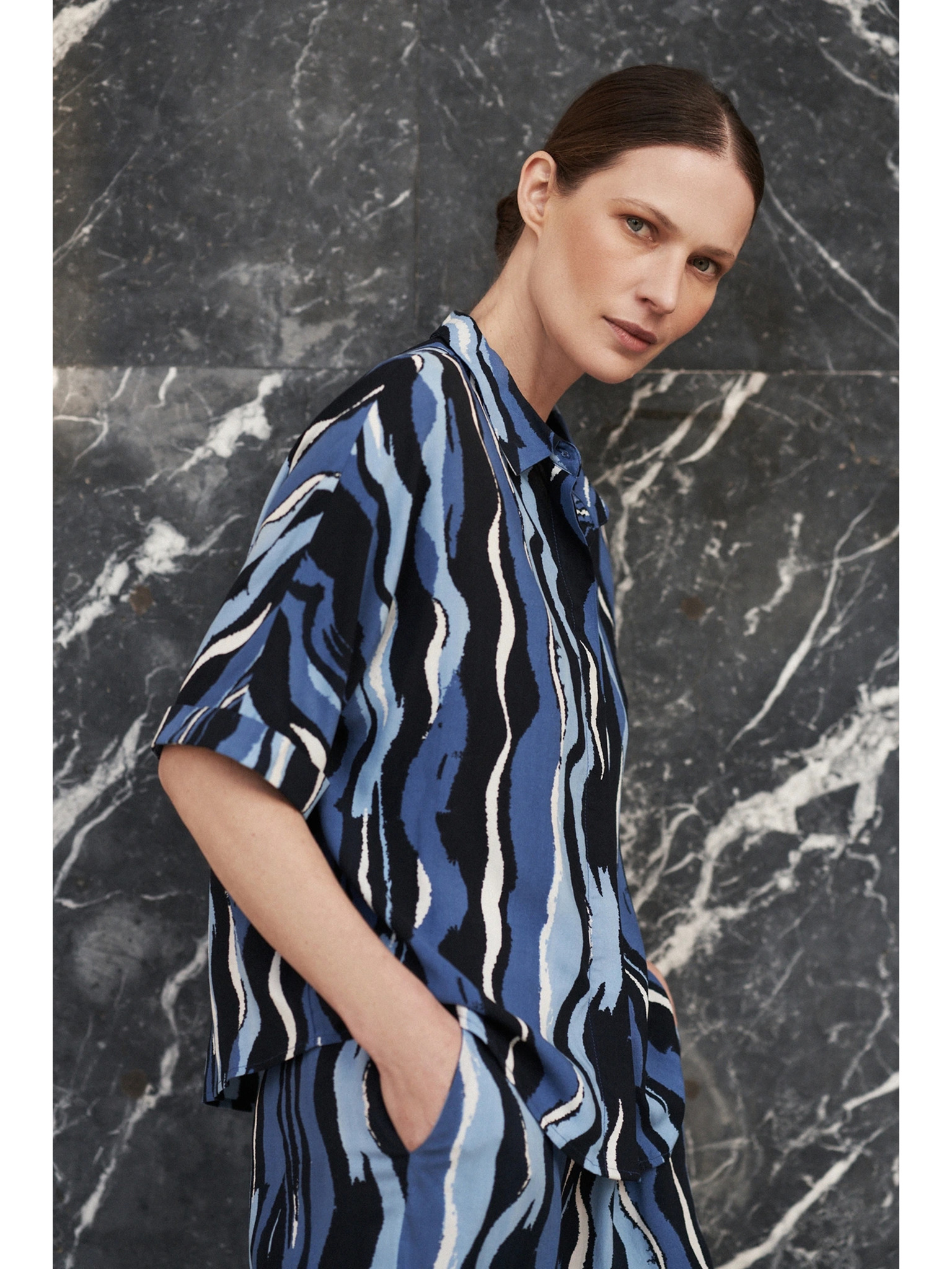 Gemusterte braune Bluse Moodo