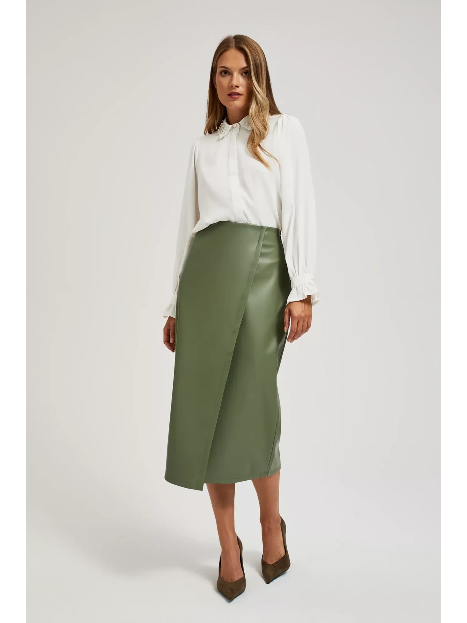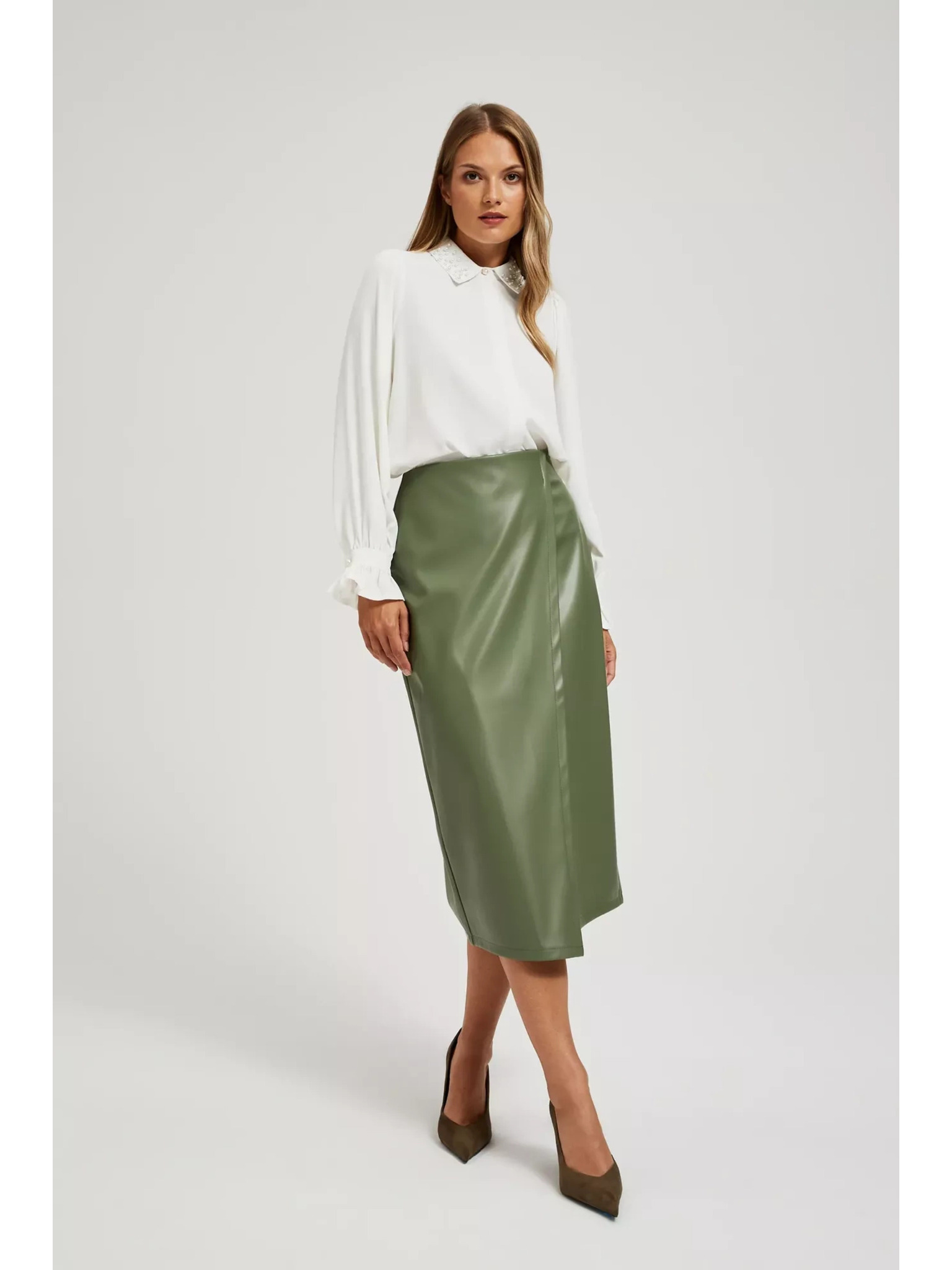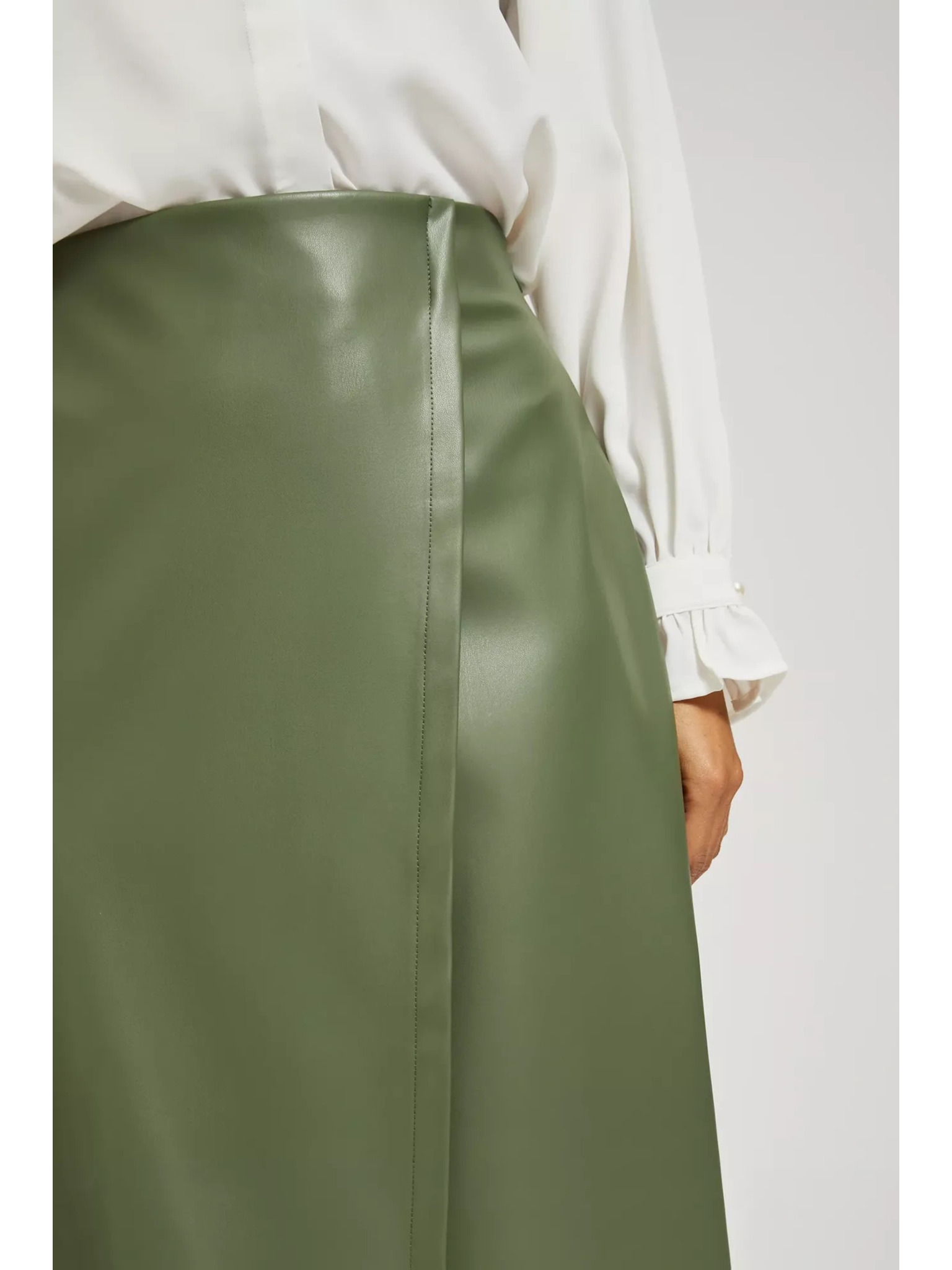 Khakifarbener Damen-Kunstlederrock mit Krawatte ZOOT.lab Ryoko