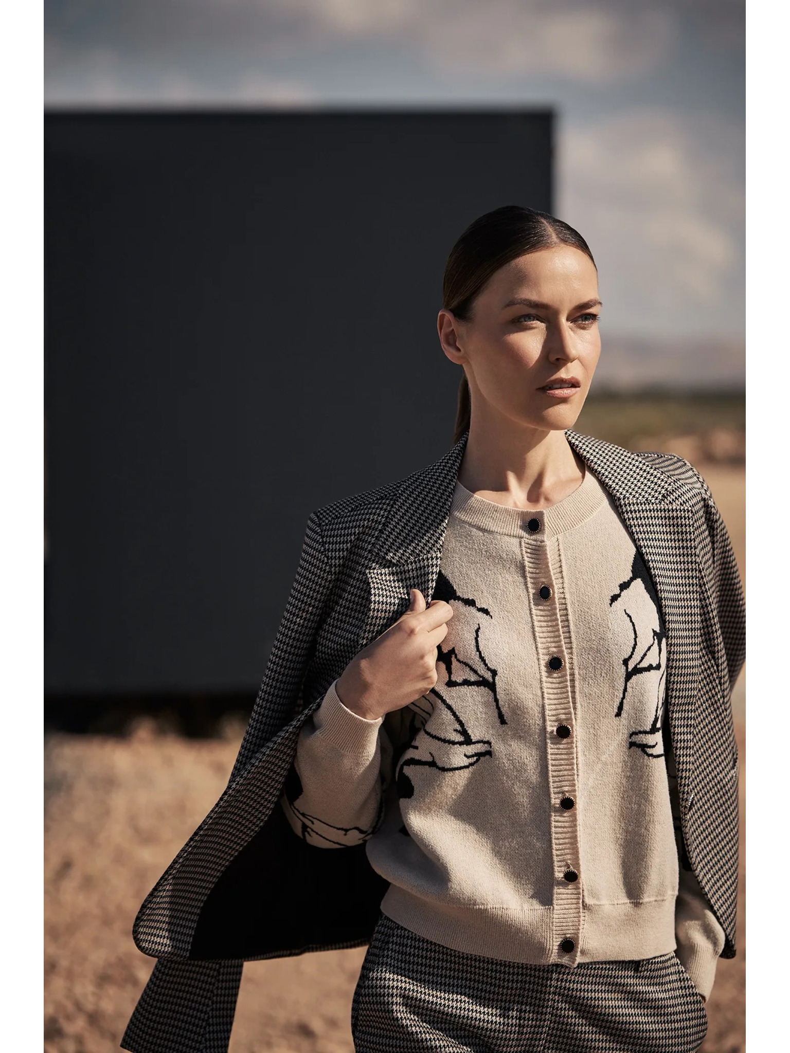 Beiger karrierter Kardigan Moodo