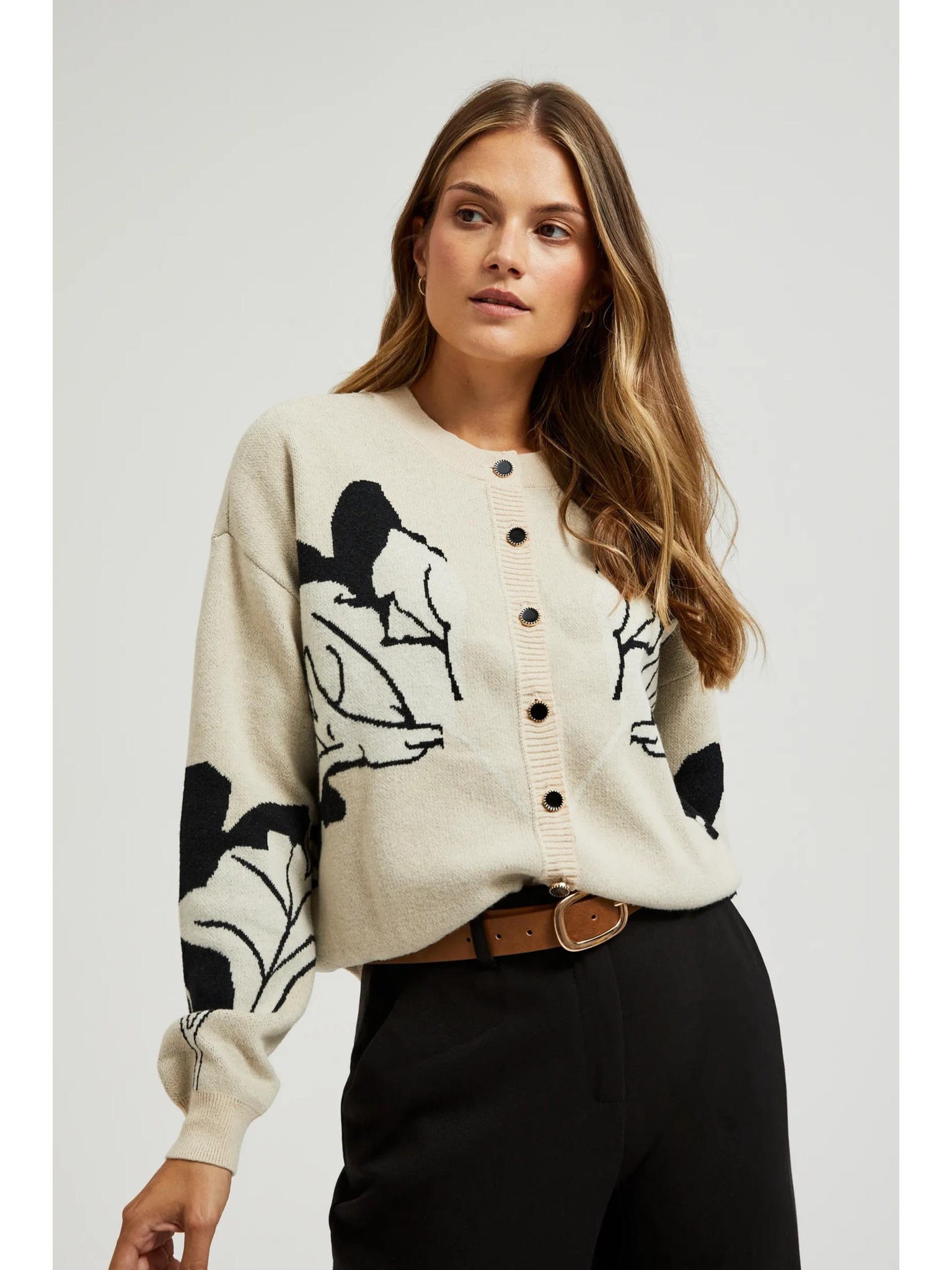 Beiger Cardigan mit Blumenmuster Moodo