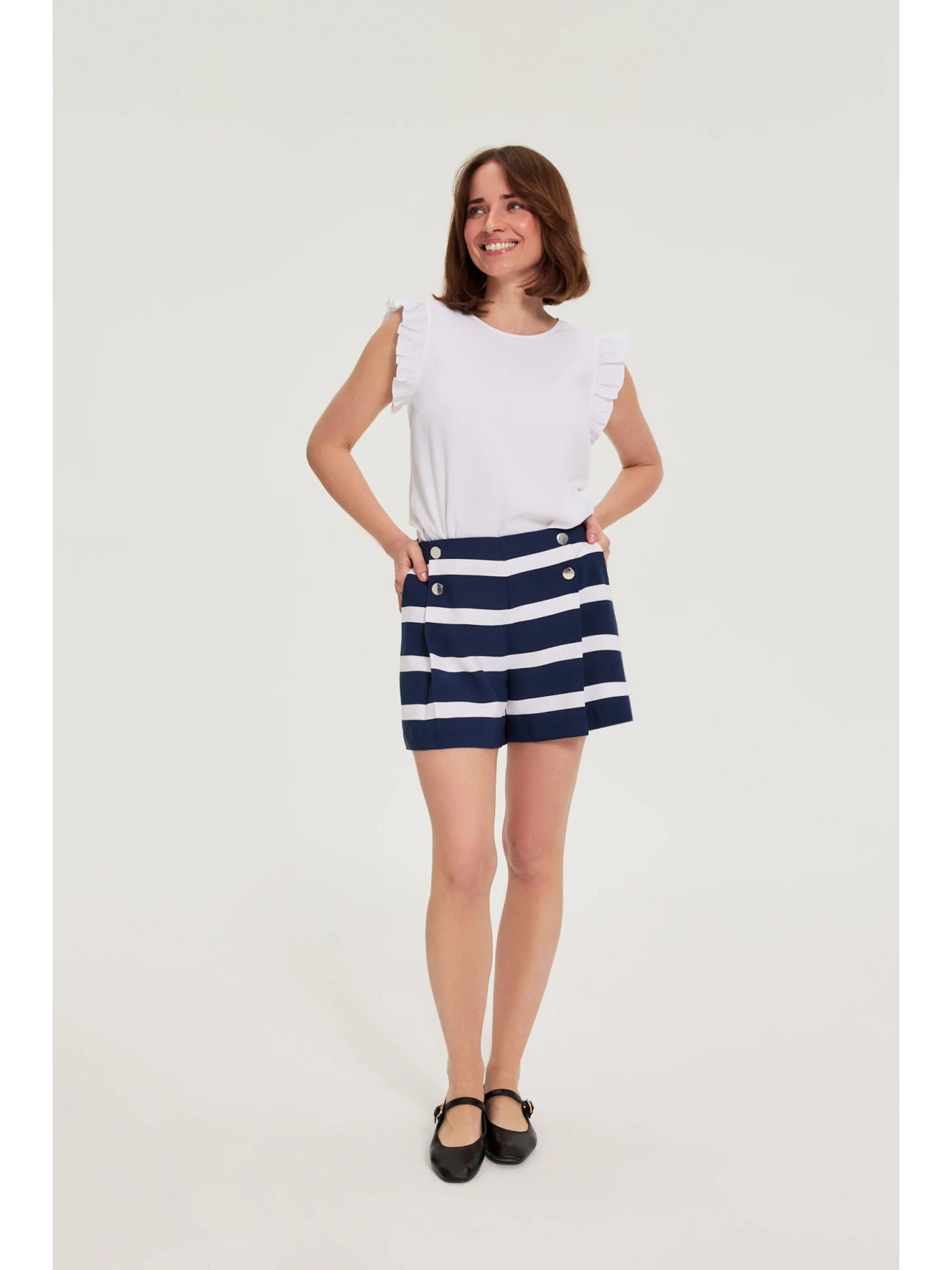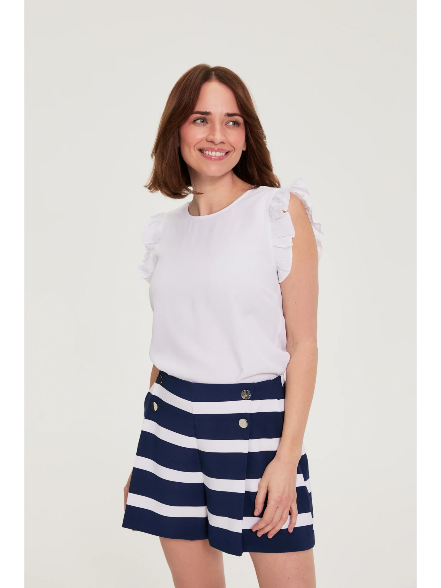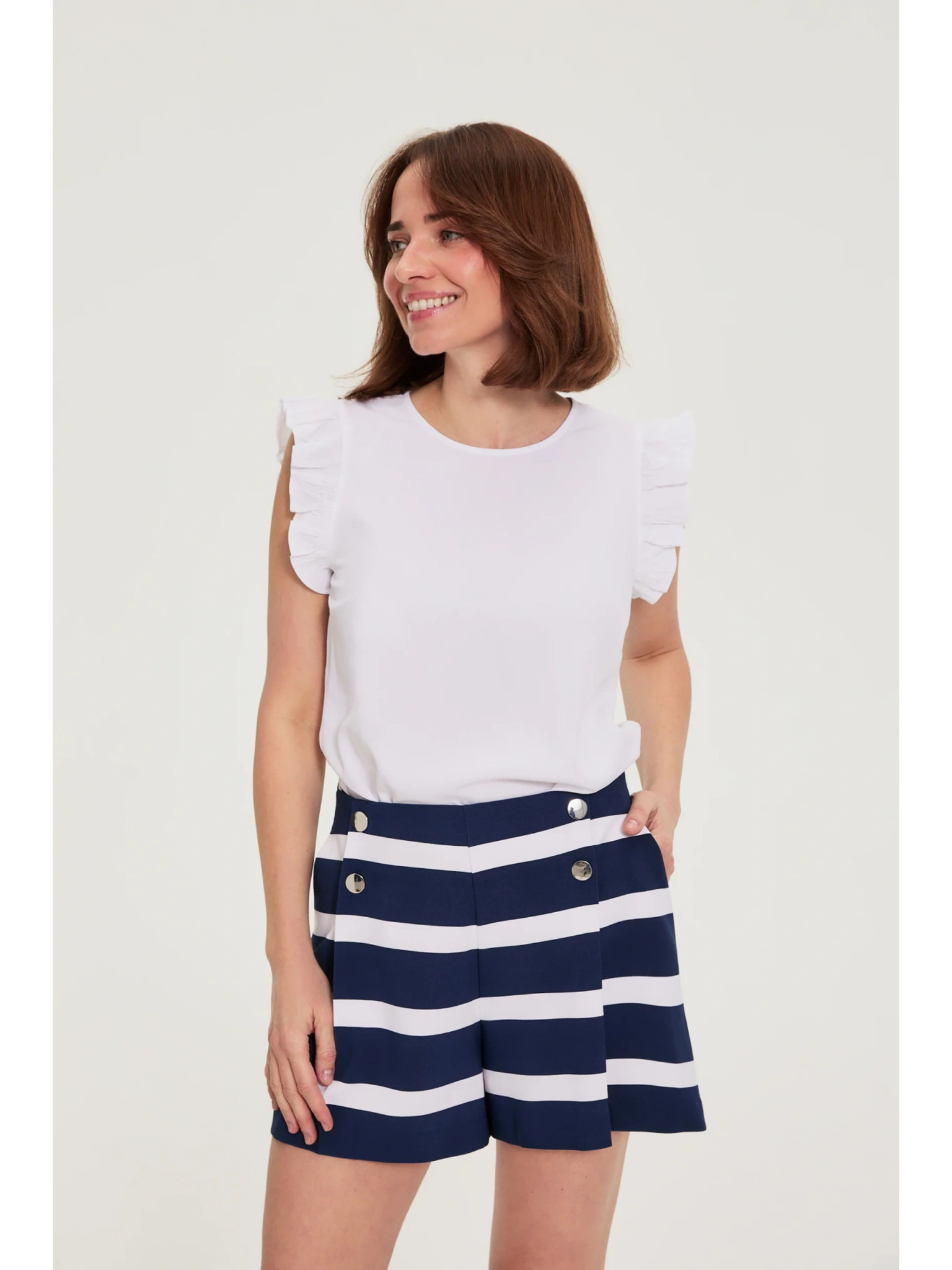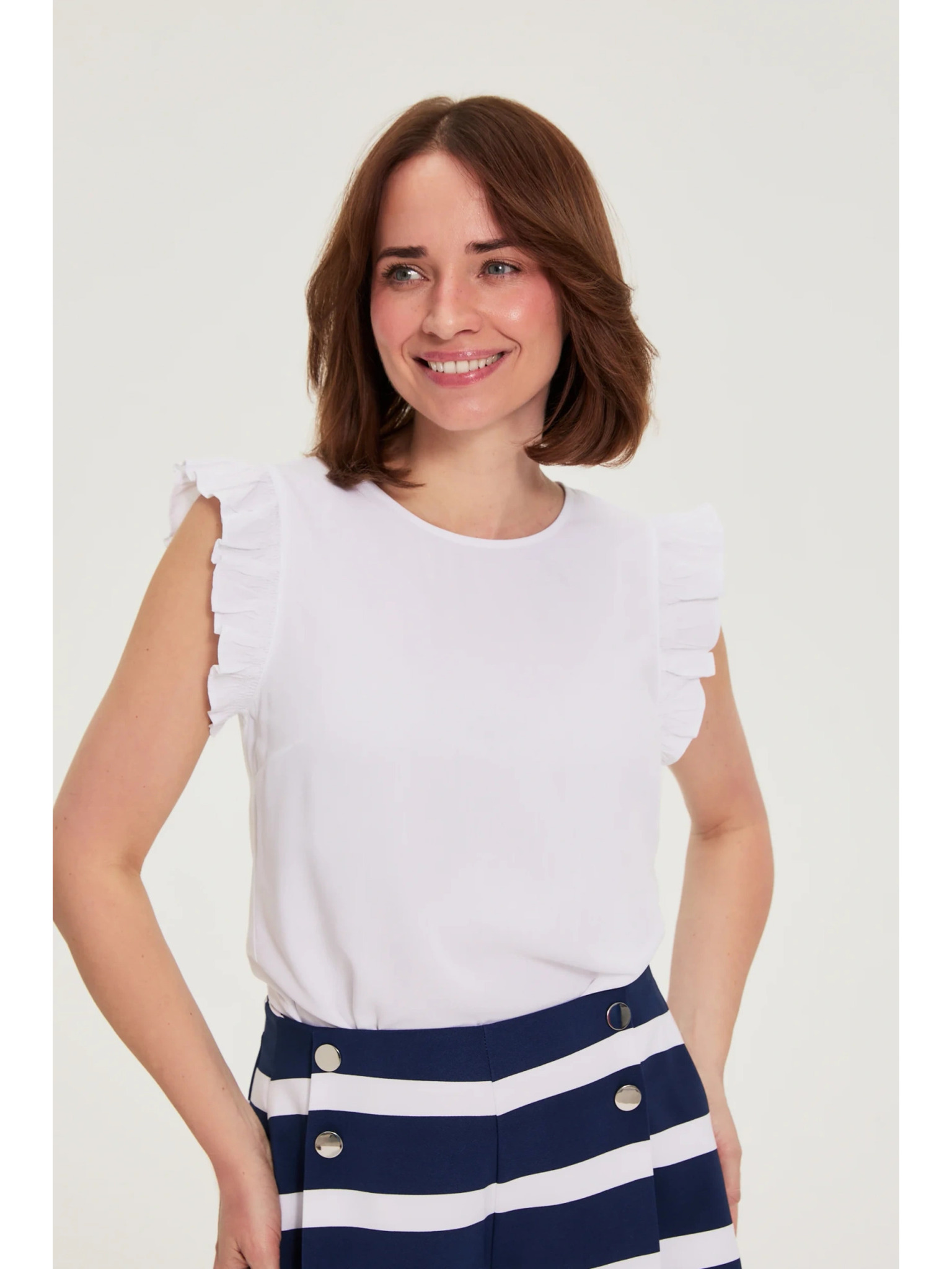 Weiße Bluse mit umgeschlagenen Ärmeln Moodo